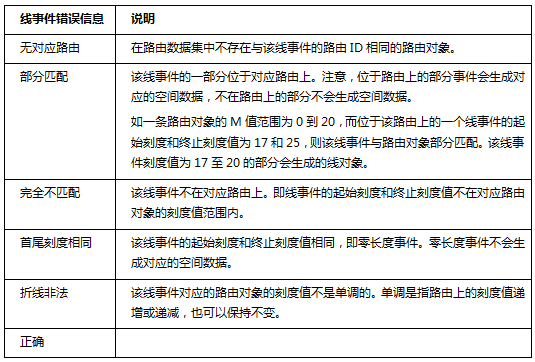 在生成空间数据时,通常会遇到几种未能成功定位的错误。如果设置了生成错误信息字段,在生成空间数据之后,应用程序会自动将该错误字段添加到事件表中并写入错误。