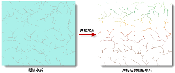 连接水系是基于栅格水系和流向栅格,为水系中的每条河流赋予唯一值的过程。