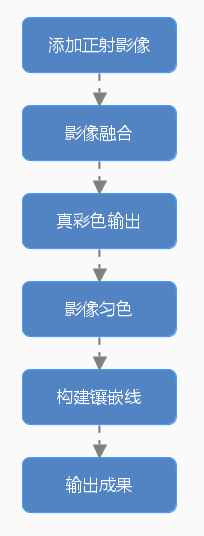 DOM镶嵌工作流是指将经过几何校正、配准等处理的正射影像,通过影像融合、图像增强和匀色等处理,最终镶嵌输出的过程。适用于已拥有正射影像数据,仅需对全色与多光谱数据做融合、增强、匀色及镶嵌处理,并输出多景影像拼接结果的场景。工作流说明如下: