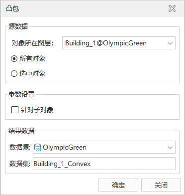 - 数据集名称:数据集名称默认为ConvexHullResult。可自行定义,输入字符串作为结果数据集的名称。