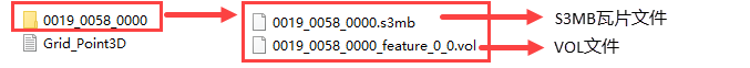 如下图所示为基于某三维流场点数据生成瓦片的结果,包含配置文件(*.scp)和瓦片文件夹,瓦片文件夹包含S3MB瓦片及其对应场数据(文件名:s3mb文件名_要素名称_索引.vol,索引从0开始。)