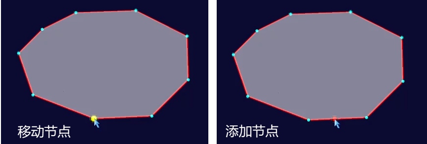 - 添加节点:在选中面对象边界线上的任意位置处单击鼠标左键,即可在鼠标单击处添加一个新的节点。