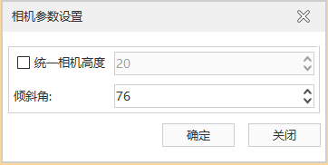 - 由线转换为路径:单击该项,弹出“相机参数设置”对话框,用户设置相机高度和倾斜角度等相关参数后,即可将选中线对象的节点转换为一条新的飞行路径,每一个节点将作为飞行路线上的站点。转换后的路径参数设置请参见创建飞行路线中参数设置的相关内容。