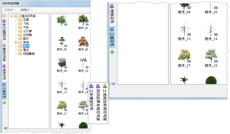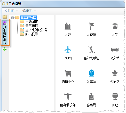 符号选择器提供了“加载更多符号库”的功能,可以简化上述的使用场景,即在符号选择器中可以不用关闭符号选择器默认加载的保存在工作空间中的符号库,而同时打开一个或多个其他符号库,方便用户对符号的广泛选择。