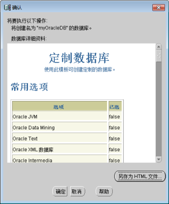 鼠标单击“完成”按钮后,将弹出参数详细信息确认窗口,单击“确认”后,进入数据库创建。