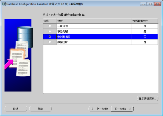 选择“定制数据库”项。我们要打造适合 SuperMap SDX+ 的 Oracle 数据库,因此这里要选择“定制数据库”。单击“下一步”按钮,进入步骤3。