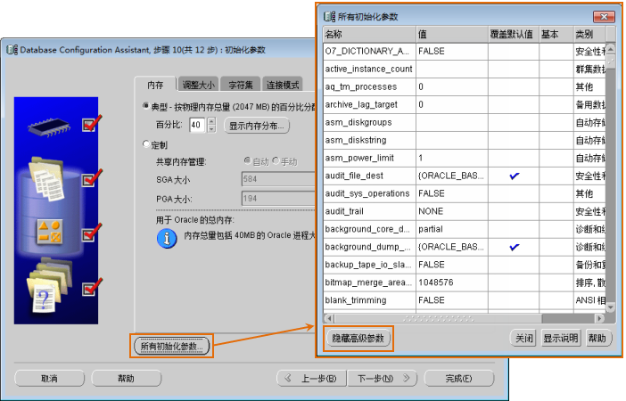 图:Database Configuration Assistant 所有初始化参数