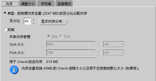 图:Database Configuration Assistant 初始化参数之内存