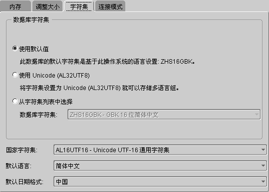 图:Database Configuration Assistant 初始化参数之字符集