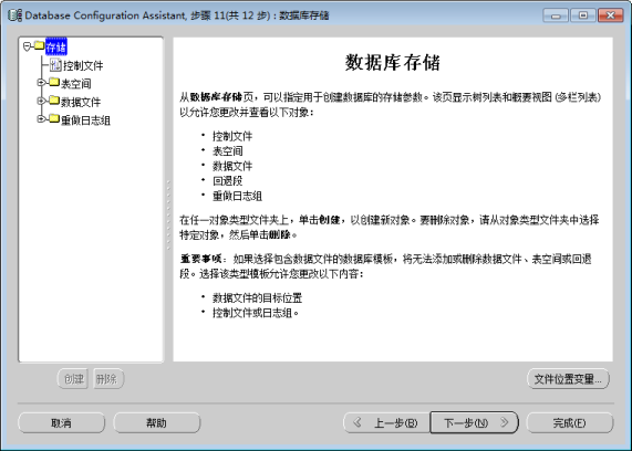 图:Database Configuration Assistant 数据库存储