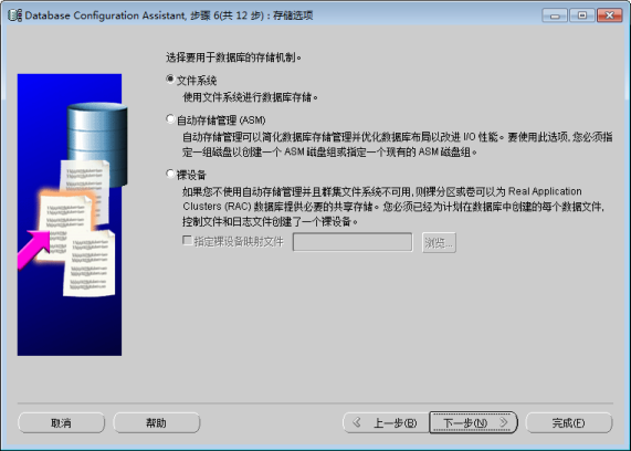 图:Database Configuration Assistant 存储选项