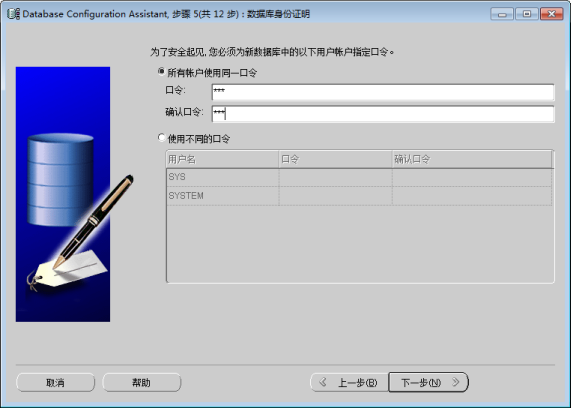 图:Database Configuration Assistant 数据库身份证明