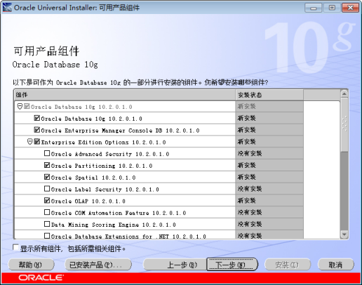- Oracle DataBase 10g是 Oracle 的基本组件,必须安装。