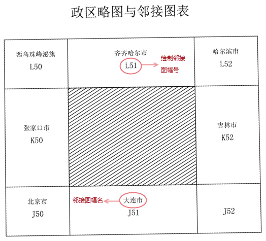 - 绘制邻接图幅号:系统会将自动在邻接图表上绘制出其图幅号。