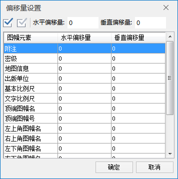 - 偏移量:单击偏移量设置...按钮,即可在弹出的对话框中设置所有的偏移量都是向右上角偏移的量,如果要向左下角偏移则要设置负数。偏移量都是相对于默认位置的偏移,默认位置为(0,0)。