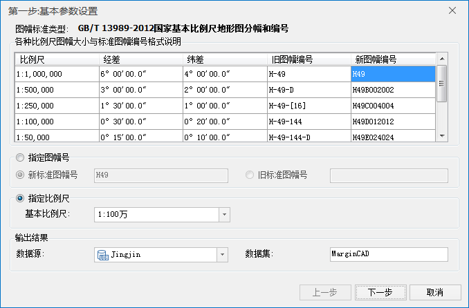 - 输出结果:设置图幅图框数据集保存的名称和数据源。