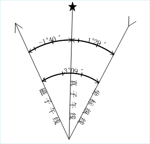 | 纬差 | 4° | 2 | 1° | 20′ | 10′ | 5′30″ | 2′30″ | 1′15″ | 25″ | 12.5″ | 6.25″ | |