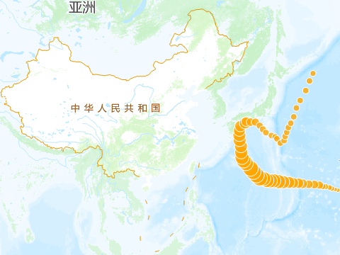 SuperMap 桌面支持时态数据播放功能,是将地图中的时态数据按照某种时间序列在地图中播放显示,通过时态数据播放可以方便查看数据随时间推移而呈现出的模式或变化趋势。如下图所示,图1为台风轨迹点要素,时间字段表示台风观测时刻,设置播放参数后,播放效果如图2。