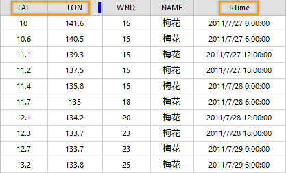图:台风轨迹点时态数据 - 影像:影像必须添加到镶嵌数据集中,使用镶嵌数据集的轮廓数据集属性表存储影像的时间值。