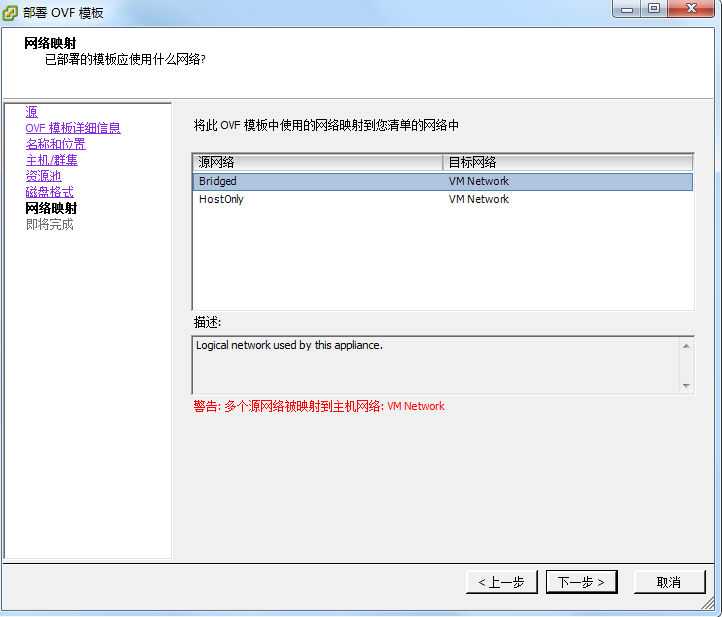 上面为部署的部分截图,请填写合适的名称,并选择实际使用的主机/集群,资源池,磁盘格式,网络等,如不需要特别的设置,直接使用默认的,进行下一步即可。