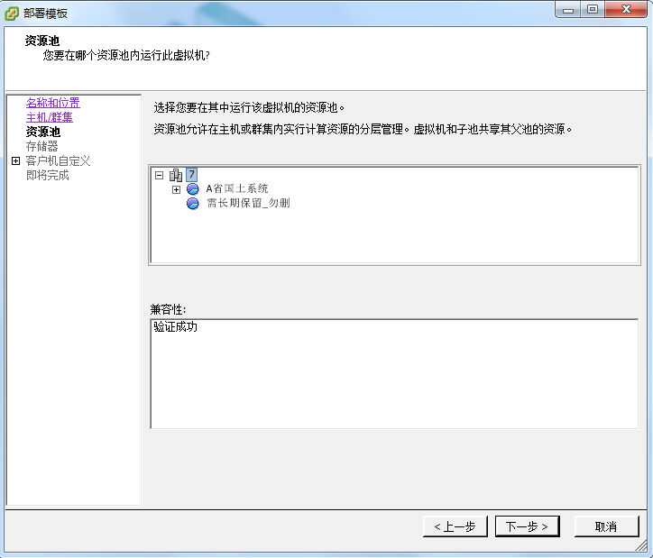 - “使用资源池”:该项为非必选项。资源池是VMware vCenter灵活管理资源的逻辑抽象。如果配置该项,则iManager在计算资源时以用户的指定的资源池为对象,即管理员创建GIS环境时所看到的资源数值都来自于配置的资源池,然后选择您需要配置的资源池即可。默认该项处于未选择状态,即不使用资源池,即以 VMware vCenter Server 所在主机作为资源相关信息的统计对象。