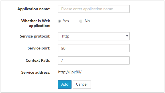 - Whether it is a Web application(required): if the application is a Web application, the choice is Yes; If it is the desktop application, the choice is No. The desktop application does not have the following items: “service access protocol”, “service access port”, and “ContextPath”.
