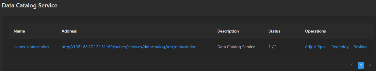 - Address: Provides the link of Data Catalog Service, clicks the link to enter Data Catalog Service interface.