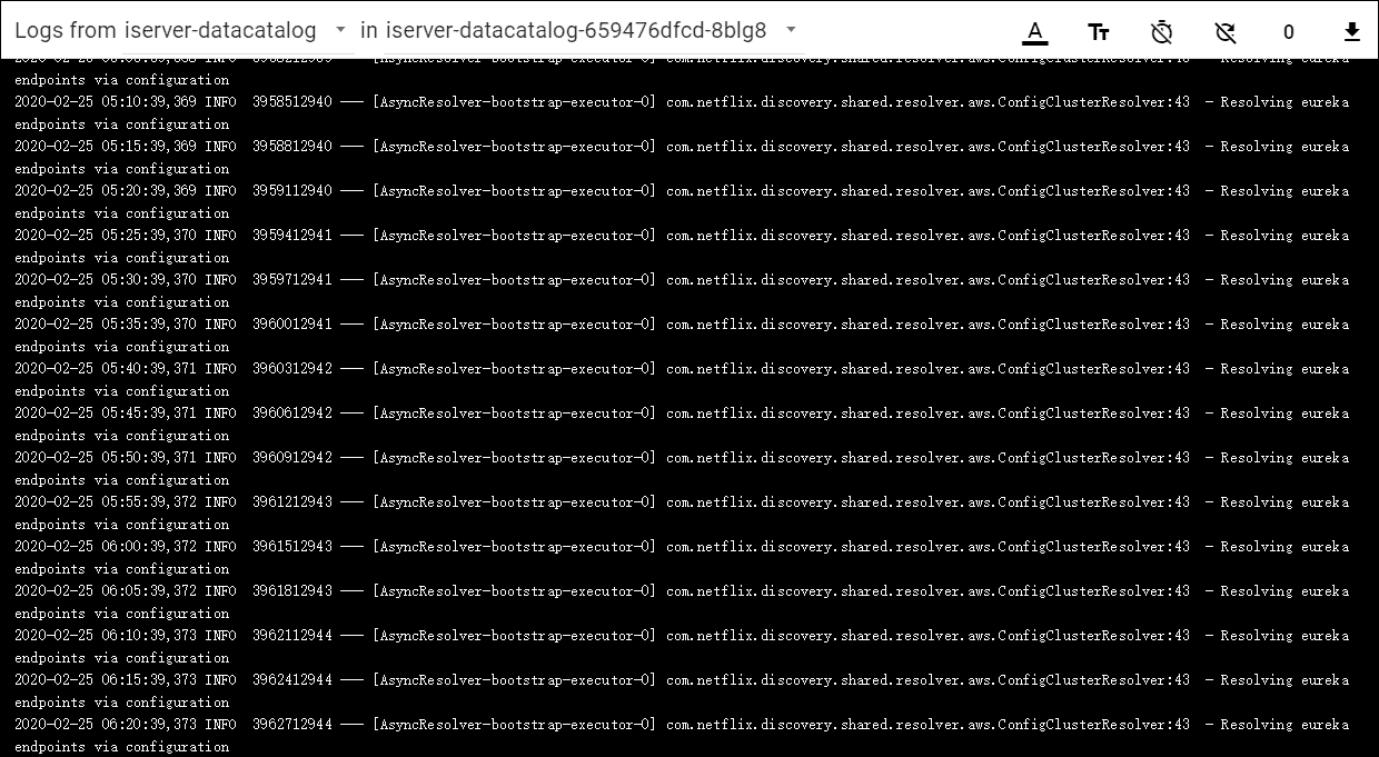 Clicks on Logs to see the container’s log, the log has the running record of the container from creation to the present.