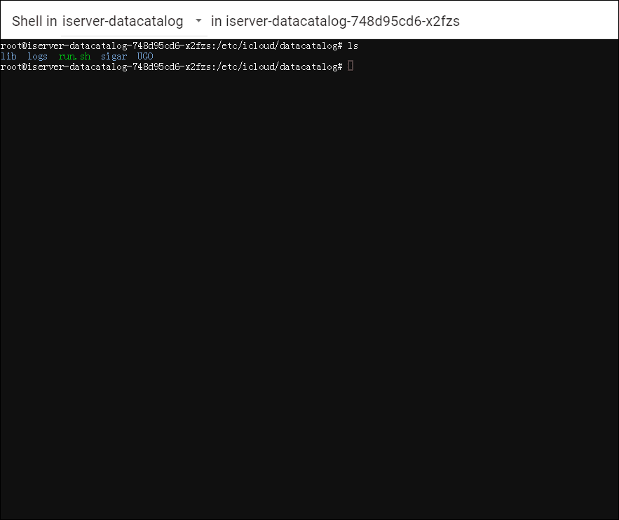 The screenshot below is an example of using ‘ls’ command to view the directory list of the container.