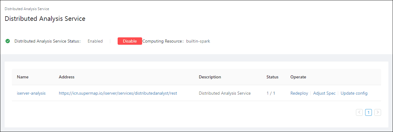 - Address: Provides the link of Distributed Analyst Service, clicks the link to enter Distributed Analyst Service interface.