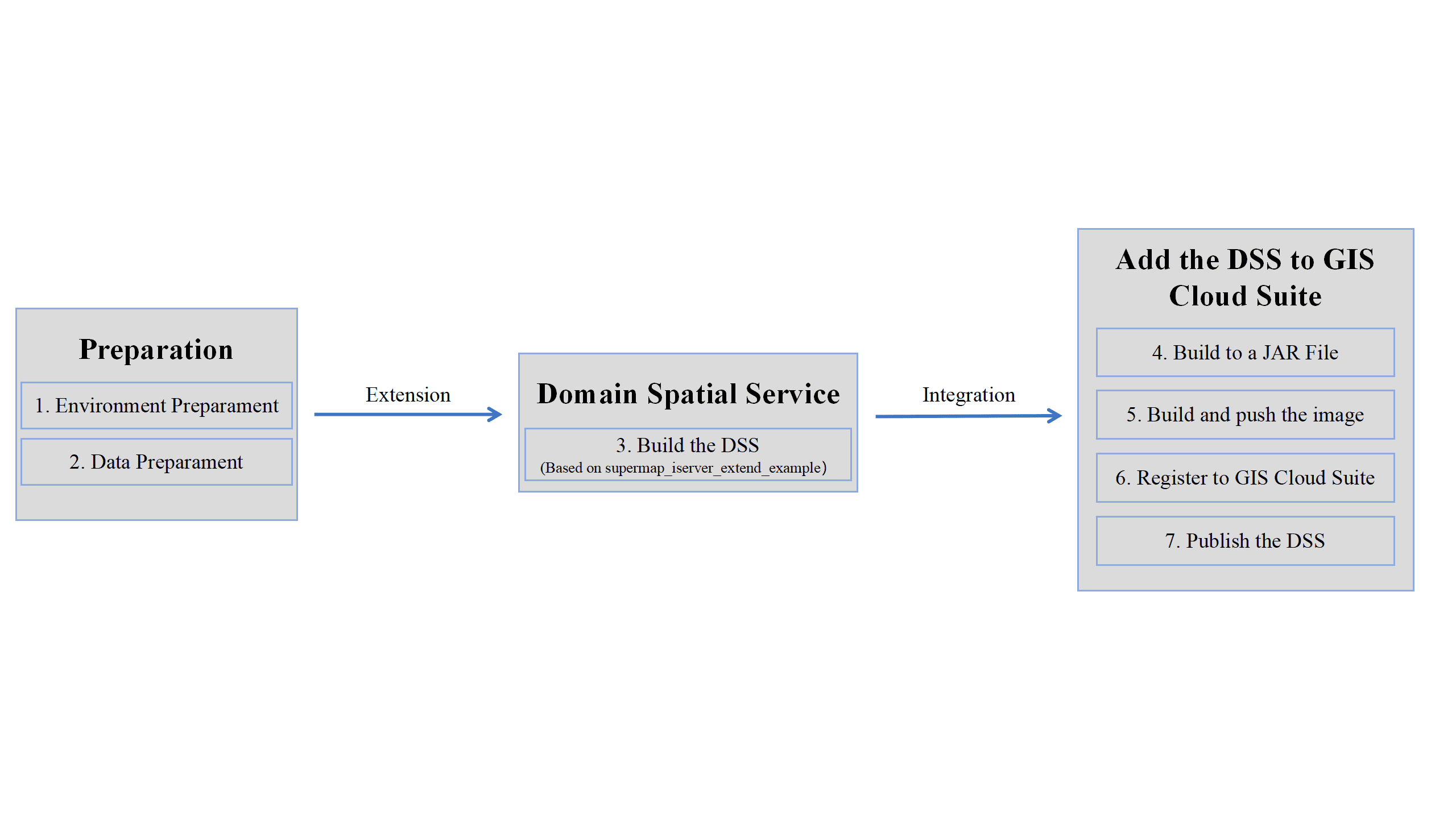 Before extending, you need to configure your local environment, and download iServer microservice development and extension resource package ‘supermap_iserver_extend_example’. The iServer microservice development and extension resource package ‘supermap_iserver_extend_example’ is used for extending GIS Cloud Suite, you can build the DSS based on ‘supermap_iserver_extend_example’. When you finish building the DSS, add it to GIS Cloud Suite then.