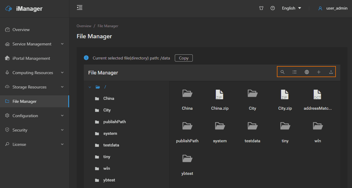 Clicks on File Management on the left navigation bar to enter the file manager page, as the screenshot shown below: