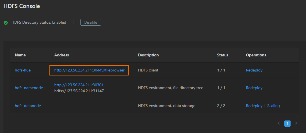 /user/username,/user/is the fixed default path,usernameis the username you created in step 5. The HDFS directory should be ‘hdfs://39.106.103.12:30691/user/username’.