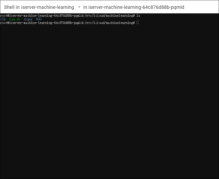 The screenshot below is an example of using ‘ls’ command to view the directory list of the container.