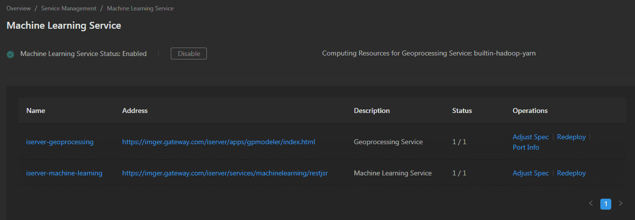 GIS Cloud Suite supports to monitor and manage the environment of Machine Learning Service.
