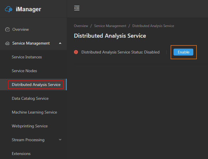 1. Clicks Service Management > Distributed Analyst Service on the left navigation bar;