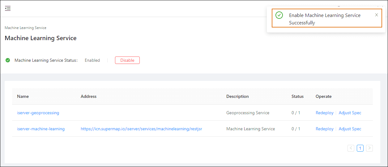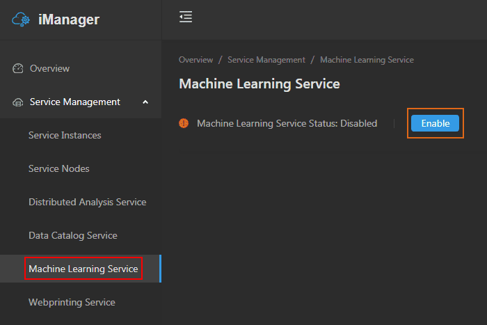 - Clicks Service Management > Machine Learning Service on the left navigation bar;