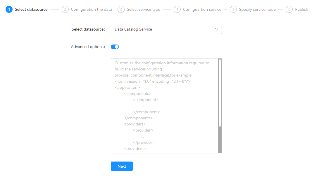 - Service Name: Define the name of service instance. The service name will be generated according to datasource and service type automatically if you do not define.