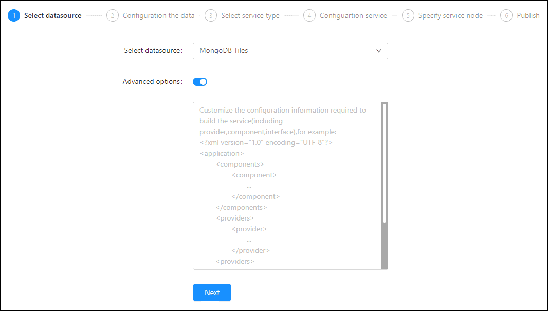 • Service Name: Define the name of service instance. The service name will be generated according to datasource and service type automatically if you do not define.