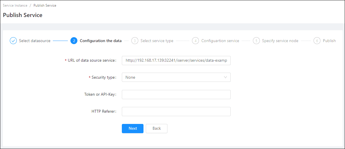- URL of datasource service(Required): The URL of the service you would used to publish.