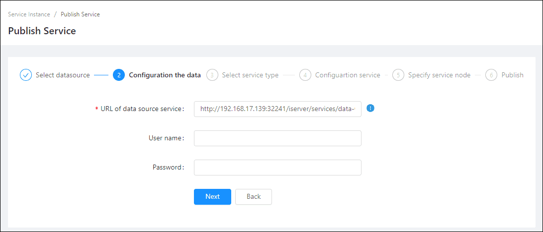 When you only select one kind of service type to publish, you can define the name of service instance: