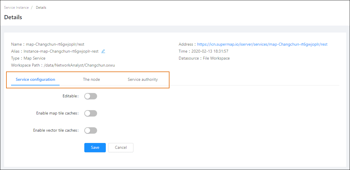 - Address: The address of service instance, clicks to view the iServer REST Service.