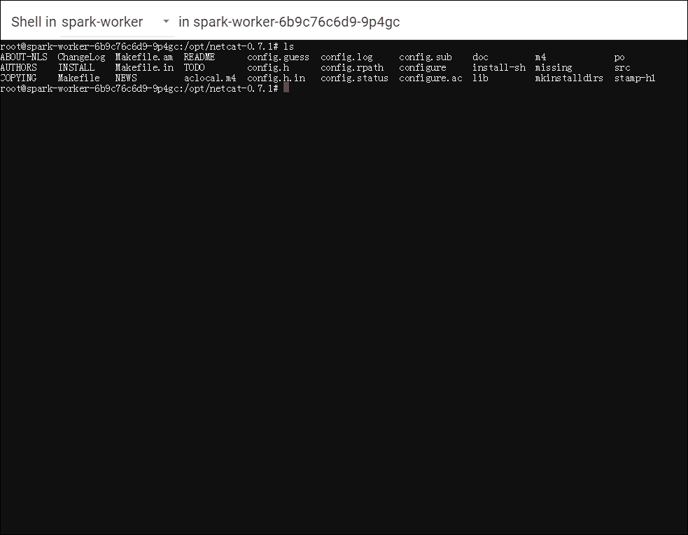 The screenshot below is an example of using ‘ls’ command to view the directory list of the container.