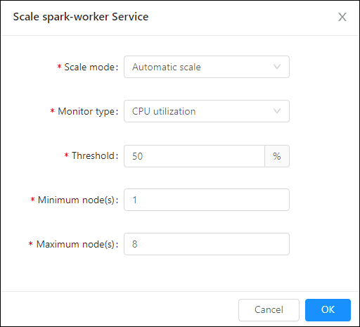 - Manual Scaling: Set the number of nodes, the system would scaling the nodes to the expected number.