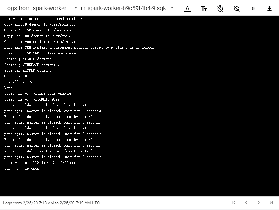- Address: The address of the service, clicks the link to see the service details of spark master/worker.