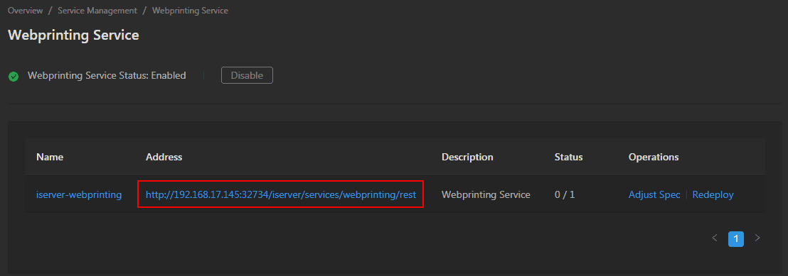 - Address: Provide the link of Web Printing Service, click the link to enter Web Printing Service interface.