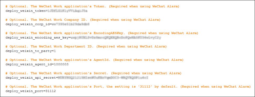 Configure the parameters of WeChat Work, the screenshot below is an example: