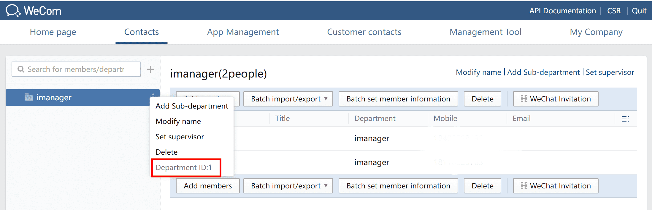 - ‘deploy_weixin_to_party’ can be found in WeChat Work > Contacts > Department ID.