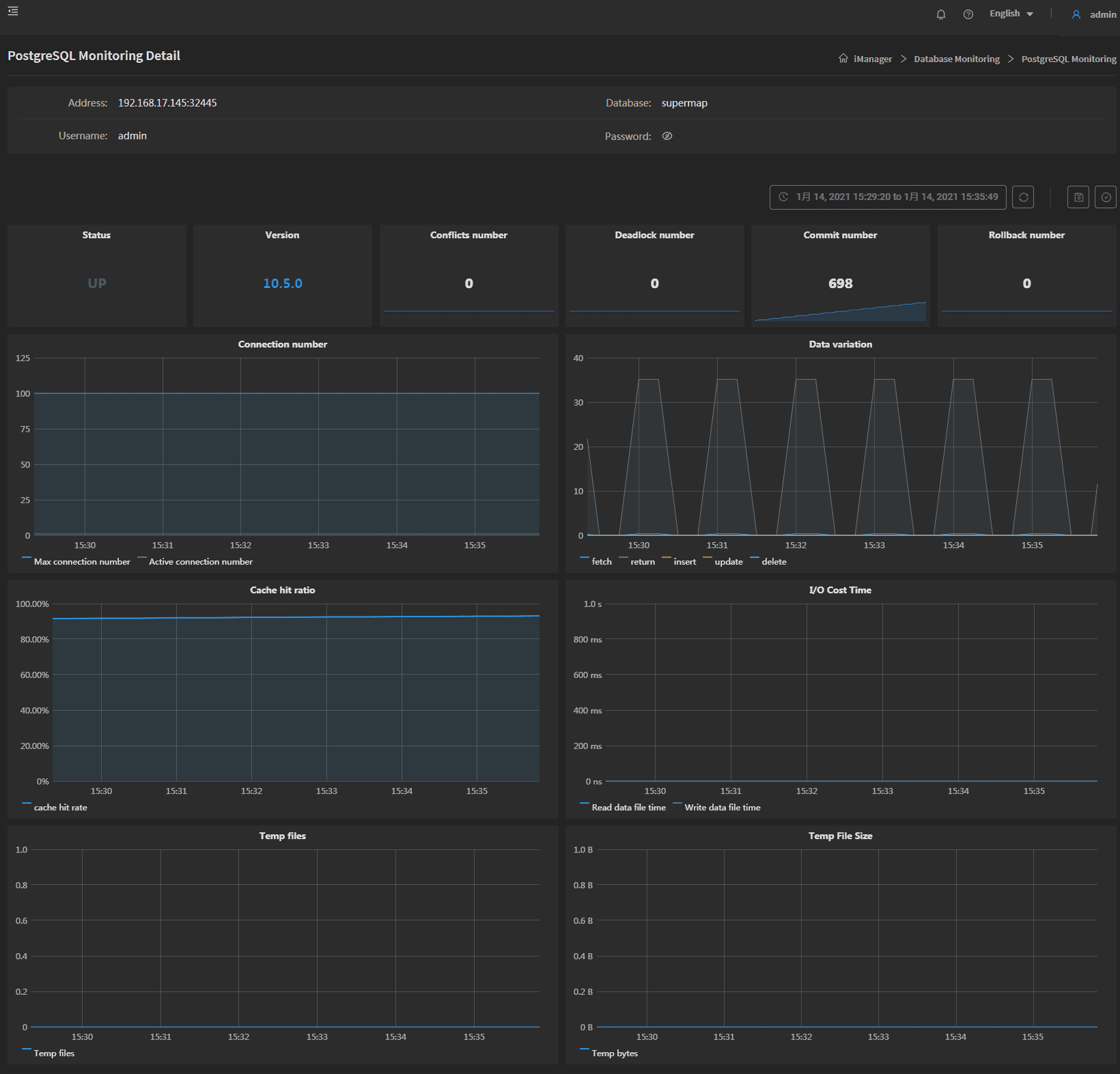 The indicators introduction above are for PostgreSQL, Oracle, and MongoDB. Please move your mouse to the exclamation mark on the top left side of each MySQL index panel to see the indicators introduction of MySQL.