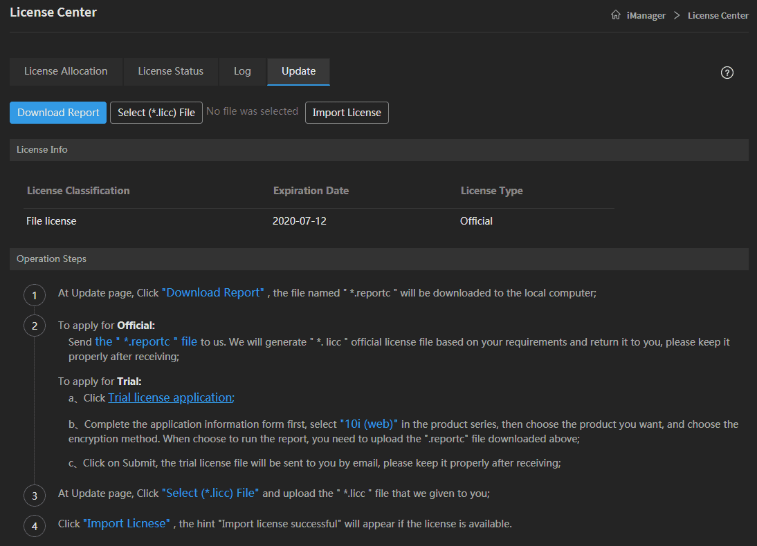 - Follow the “Operation Steps” to activate the file license.